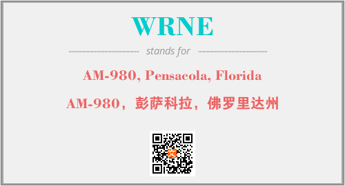 上述内容是“AM-980, Pensacola, Florida”作为“WRNE”的缩写,解释为“AM-980,彭萨科拉,佛罗里达州”时的信息,以及英文缩略词WRNE所代表的英文单词,其对应的中文拼音、详细解释以及在英文中的流行度和相关分类、应用领域及应用示例等。