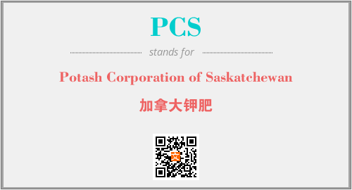 英文缩略词“PCS”经常作为“Potash Corporation of Saskatchewan”的英文缩写来使用,中文表示:“加拿大钾肥”。本文将详细介绍英文缩写词PCS所代表英文单词,其对应的中文拼音、详细解释以及在英语中的流行度。此外,还有关于缩略词PCS的分类、应用领域及相关应用示例等。