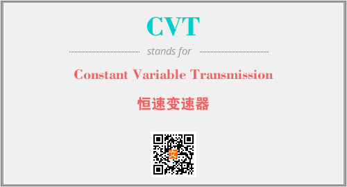 英文缩略词“CVT”经常作为“Constant Variable Transmission”的英文缩写来使用,中文表示:“恒速变速器”。本文将详细介绍英文缩写词CVT所代表英文单词,其对应的中文拼音、详细解释以及在英语中的流行度。此外,还有关于缩略词CVT的分类、应用领域及相关应用示例等。