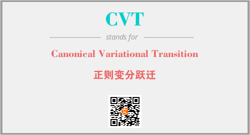 英文缩略词“CVT”经常作为“Canonical Variational Transition”的英文缩写来使用,中文表示:“正则变分跃迁”。本文将详细介绍英文缩写词CVT所代表英文单词,其对应的中文拼音、详细解释以及在英语中的流行度。此外,还有关于缩略词CVT的分类、应用领域及相关应用示例等。