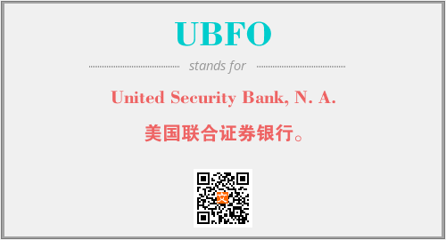 英文缩略词“UBFO”经常作为“United Security Bank, N. A.”的英文缩写来使用,中文表示:“美国联合证券银行。”。本文将详细介绍英文缩写词UBFO所代表英文单词,其对应的中文拼音、详细解释以及在英语中的流行度。此外,还有关于缩略词UBFO的分类、应用领域及相关应用示例等。