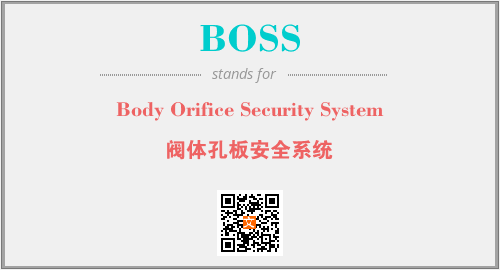 英文缩略词“BOSS”经常作为“Body Orifice Security System”的英文缩写来使用,中文表示:“阀体孔板安全系统”。本文将详细介绍英文缩写词BOSS所代表英文单词,其对应的中文拼音、详细解释以及在英语中的流行度。此外,还有关于缩略词BOSS的分类、应用领域及相关应用示例等。
