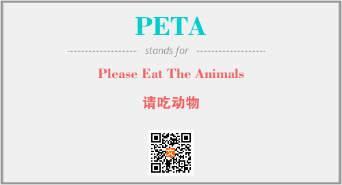 以上为Please Eat The Animals英文缩略词PETA的中文解释,以及该英文缩写在英语的流行度、分类和应用领域方面的信息。