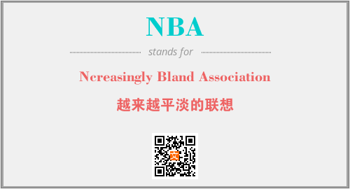 以上为Ncreasingly Bland Association英文缩略词NBA的中文解释,以及该英文缩写在英语的流行度、分类和应用领域方面的信息。