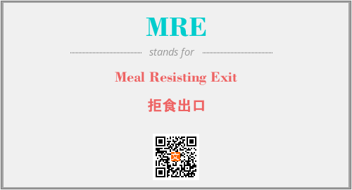以上为Meal Resisting Exit英文缩略词MRE的中文解释,以及该英文缩写在英语的流行度、分类和应用领域方面的信息。