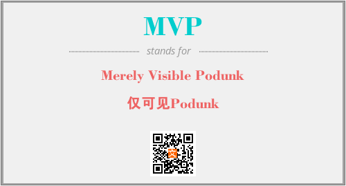 上述内容是“Merely Visible Podunk”作为“MVP”的缩写,解释为“仅可见Podunk”时的信息,以及英文缩略词MVP所代表的英文单词,其对应的中文拼音、详细解释以及在英文中的流行度和相关分类、应用领域及应用示例等。
