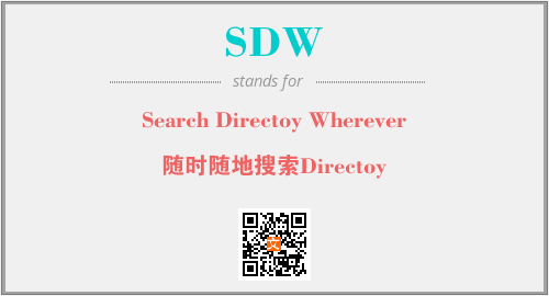 英文缩略词“SDW”经常作为“Search Directoy Wherever”的英文缩写来使用,中文表示:“随时随地搜索Directoy”。本文将详细介绍英文缩写词SDW所代表英文单词,其对应的中文拼音、详细解释以及在英语中的流行度。此外,还有关于缩略词SDW的分类、应用领域及相关应用示例等。