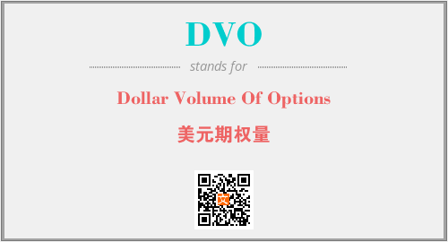 上述内容是“Dollar Volume Of Options”作为“DVO”的缩写,解释为“美元期权量”时的信息,以及英文缩略词DVO所代表的英文单词,其对应的中文拼音、详细解释以及在英文中的流行度和相关分类、应用领域及应用示例等。