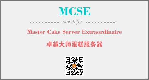 上述内容是“Master Cake Server Extraordinaire”作为“MCSE”的缩写,解释为“卓越大师蛋糕服务器”时的信息,以及英文缩略词MCSE所代表的英文单词,其对应的中文拼音、详细解释以及在英文中的流行度和相关分类、应用领域及应用示例等。
