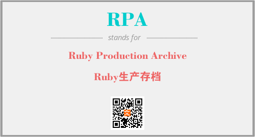 英文缩略词“RPA”经常作为“Ruby Production Archive”的英文缩写来使用,中文表示:“Ruby生产存档”。本文将详细介绍英文缩写词RPA所代表英文单词,其对应的中文拼音、详细解释以及在英语中的流行度。此外,还有关于缩略词RPA的分类、应用领域及相关应用示例等。