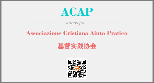 上述内容是“Associazione Cristiana Aiuto Pratico”作为“ACAP”的缩写,解释为“基督实践协会”时的信息,以及英文缩略词ACAP所代表的英文单词,其对应的中文拼音、详细解释以及在英文中的流行度和相关分类、应用领域及应用示例等。