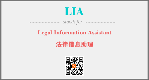 上述内容是“Legal Information Assistant”作为“LIA”的缩写,解释为“法律信息助理”时的信息,以及英文缩略词LIA所代表的英文单词,其对应的中文拼音、详细解释以及在英文中的流行度和相关分类、应用领域及应用示例等。