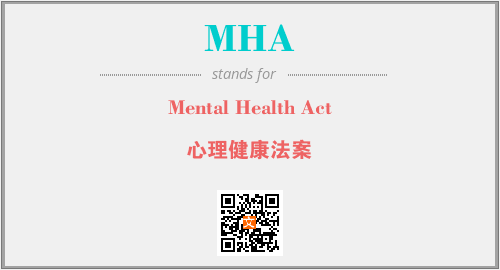 以上为Mental Health Act英文缩略词MHA的中文解释,以及该英文缩写在英语的流行度、分类和应用领域方面的信息。