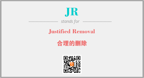 上述内容是“Justified Removal”作为“JR”的缩写,解释为“合理的删除”时的信息,以及英文缩略词JR所代表的英文单词,其对应的中文拼音、详细解释以及在英文中的流行度和相关分类、应用领域及应用示例等。