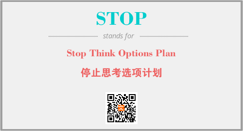 以上为Stop Think Options Plan英文缩略词STOP的中文解释,以及该英文缩写在英语的流行度、分类和应用领域方面的信息。