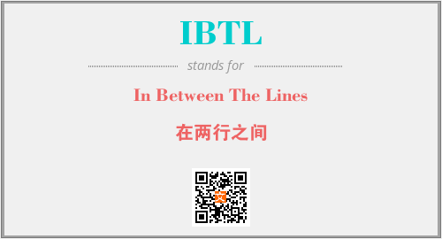 英文缩略词“IBTL”经常作为“In Between The Lines”的英文缩写来使用,中文表示:“在两行之间”。本文将详细介绍英文缩写词IBTL所代表英文单词,其对应的中文拼音、详细解释以及在英语中的流行度。此外,还有关于缩略词IBTL的分类、应用领域及相关应用示例等。