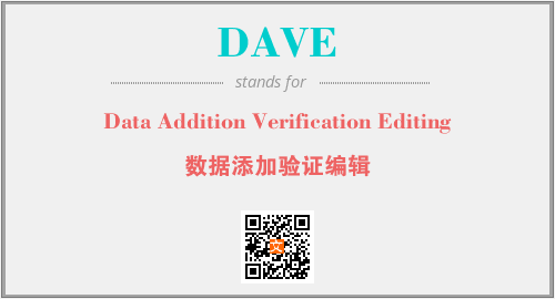 上述内容是“Data Addition Verification Editing”作为“DAVE”的缩写,解释为“数据添加验证编辑”时的信息,以及英文缩略词DAVE所代表的英文单词,其对应的中文拼音、详细解释以及在英文中的流行度和相关分类、应用领域及应用示例等。