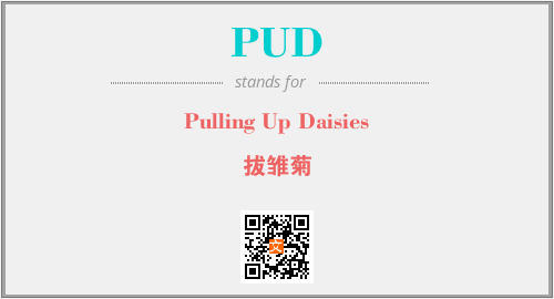 上述内容是“Pulling Up Daisies”作为“PUD”的缩写,解释为“拔雏菊”时的信息,以及英文缩略词PUD所代表的英文单词,其对应的中文拼音、详细解释以及在英文中的流行度和相关分类、应用领域及应用示例等。