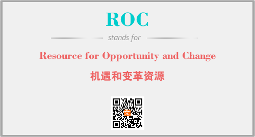 上述内容是“Resource for Opportunity and Change”作为“ROC”的缩写,解释为“机遇和变革资源”时的信息,以及英文缩略词ROC所代表的英文单词,其对应的中文拼音、详细解释以及在英文中的流行度和相关分类、应用领域及应用示例等。