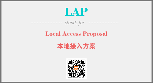 上述内容是“Local Access Proposal”作为“LAP”的缩写,解释为“本地接入方案”时的信息,以及英文缩略词LAP所代表的英文单词,其对应的中文拼音、详细解释以及在英文中的流行度和相关分类、应用领域及应用示例等。