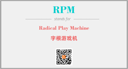 英文缩略词“RPM”经常作为“Radical Play Machine”的英文缩写来使用,中文表示:“字根游戏机”。本文将详细介绍英文缩写词RPM所代表英文单词,其对应的中文拼音、详细解释以及在英语中的流行度。此外,还有关于缩略词RPM的分类、应用领域及相关应用示例等。