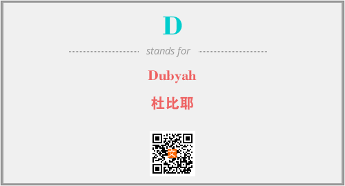 英文缩略词“D”经常作为“Dubyah”的英文缩写来使用,中文表示:“杜比耶”。本文将详细介绍英文缩写词D所代表英文单词,其对应的中文拼音、详细解释以及在英语中的流行度。此外,还有关于缩略词D的分类、应用领域及相关应用示例等。