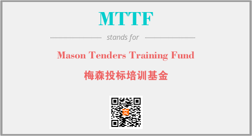 英文缩略词“MTTF”经常作为“Mason Tenders Training Fund”的英文缩写来使用,中文表示:“梅森投标培训基金”。本文将详细介绍英文缩写词MTTF所代表英文单词,其对应的中文拼音、详细解释以及在英语中的流行度。此外,还有关于缩略词MTTF的分类、应用领域及相关应用示例等。
