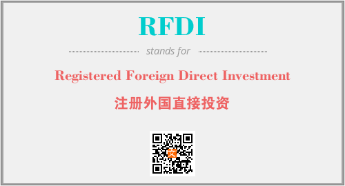 上述内容是“Registered Foreign Direct Investment”作为“RFDI”的缩写,解释为“注册外国直接投资”时的信息,以及英文缩略词RFDI所代表的英文单词,其对应的中文拼音、详细解释以及在英文中的流行度和相关分类、应用领域及应用示例等。