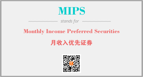 上述内容是“Monthly Income Preferred Securities”作为“MIPS”的缩写,解释为“月收入优先证券”时的信息,以及英文缩略词MIPS所代表的英文单词,其对应的中文拼音、详细解释以及在英文中的流行度和相关分类、应用领域及应用示例等。