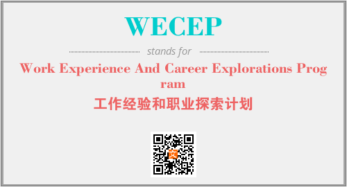 上述内容是“Work Experience And Career Explorations Program”作为“WECEP”的缩写,解释为“工作经验和职业探索计划”时的信息,以及英文缩略词WECEP所代表的英文单词,其对应的中文拼音、详细解释以及在英文中的流行度和相关分类、应用领域及应用示例等。