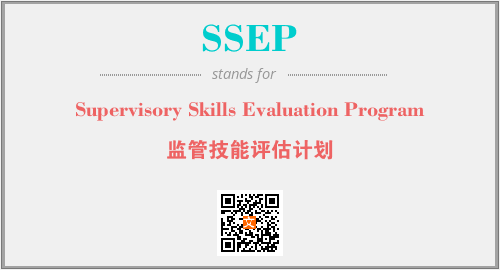 上述内容是“Supervisory Skills Evaluation Program”作为“SSEP”的缩写,解释为“监管技能评估计划”时的信息,以及英文缩略词SSEP所代表的英文单词,其对应的中文拼音、详细解释以及在英文中的流行度和相关分类、应用领域及应用示例等。