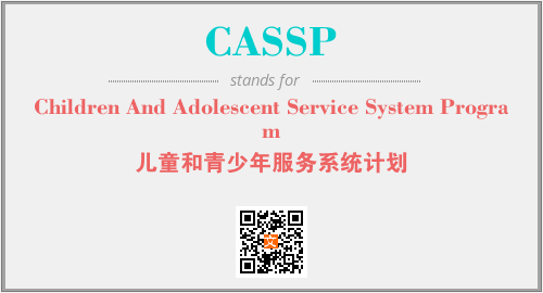 英文缩略词“CASSP”经常作为“Children And Adolescent Service System Program”的英文缩写来使用,中文表示:“儿童和青少年服务系统计划”。本文将详细介绍英文缩写词CASSP所代表英文单词,其对应的中文拼音、详细解释以及在英语中的流行度。此外,还有关于缩略词CASSP的分类、应用领域及相关应用示例等。