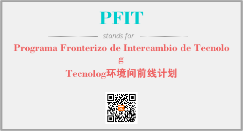 上述内容是“Programa Fronterizo de Intercambio de Tecnolog”作为“PFIT”的缩写,解释为“Tecnolog环境间前线计划”时的信息,以及英文缩略词PFIT所代表的英文单词,其对应的中文拼音、详细解释以及在英文中的流行度和相关分类、应用领域及应用示例等。