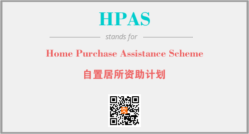 上述内容是“Home Purchase Assistance Scheme”作为“HPAS”的缩写,解释为“自置居所资助计划”时的信息,以及英文缩略词HPAS所代表的英文单词,其对应的中文拼音、详细解释以及在英文中的流行度和相关分类、应用领域及应用示例等。