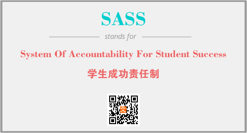上述内容是“System Of Accountability For Student Success”作为“SASS”的缩写,解释为“学生成功责任制”时的信息,以及英文缩略词SASS所代表的英文单词,其对应的中文拼音、详细解释以及在英文中的流行度和相关分类、应用领域及应用示例等。