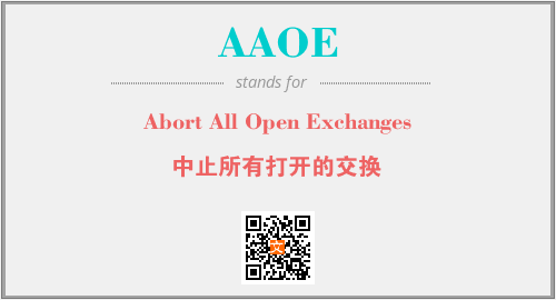 上述内容是“Abort All Open Exchanges”作为“AAOE”的缩写,解释为“中止所有打开的交换”时的信息,以及英文缩略词AAOE所代表的英文单词,其对应的中文拼音、详细解释以及在英文中的流行度和相关分类、应用领域及应用示例等。