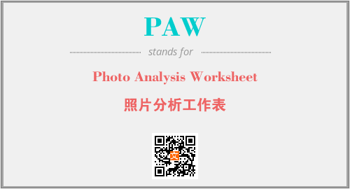 上述内容是“Photo Analysis Worksheet”作为“PAW”的缩写,解释为“照片分析工作表”时的信息,以及英文缩略词PAW所代表的英文单词,其对应的中文拼音、详细解释以及在英文中的流行度和相关分类、应用领域及应用示例等。