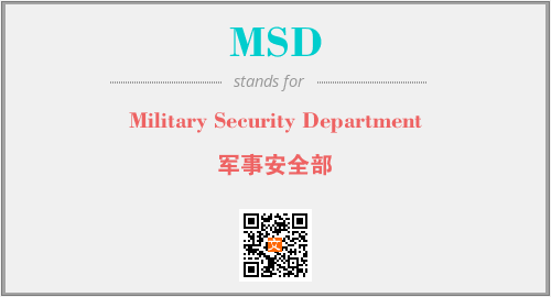 上述内容是“Military Security Department”作为“MSD”的缩写,解释为“军事安全部”时的信息,以及英文缩略词MSD所代表的英文单词,其对应的中文拼音、详细解释以及在英文中的流行度和相关分类、应用领域及应用示例等。