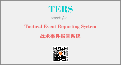 上述内容是“Tactical Event Reporting System”作为“TERS”的缩写,解释为“战术事件报告系统”时的信息,以及英文缩略词TERS所代表的英文单词,其对应的中文拼音、详细解释以及在英文中的流行度和相关分类、应用领域及应用示例等。