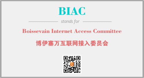 英文缩略词“BIAC”经常作为“Boissevain Internet Access Committee”的英文缩写来使用,中文表示:“博伊塞万互联网接入委员会”。本文将详细介绍英文缩写词BIAC所代表英文单词,其对应的中文拼音、详细解释以及在英语中的流行度。此外,还有关于缩略词BIAC的分类、应用领域及相关应用示例等。