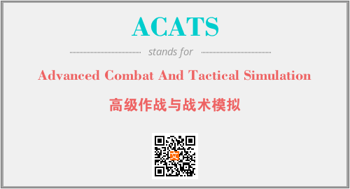 以上为Advanced Combat And Tactical Simulation英文缩略词ACATS的中文解释,以及该英文缩写在英语的流行度、分类和应用领域方面的信息。