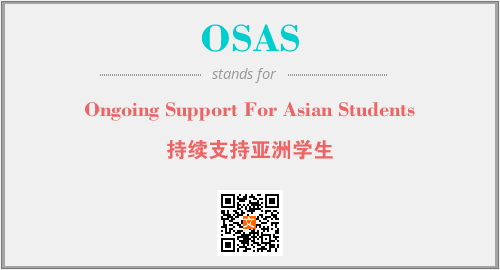 上述内容是“Ongoing Support For Asian Students”作为“OSAS”的缩写,解释为“持续支持亚洲学生”时的信息,以及英文缩略词OSAS所代表的英文单词,其对应的中文拼音、详细解释以及在英文中的流行度和相关分类、应用领域及应用示例等。