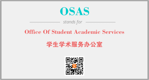 上述内容是“Office Of Student Academic Services”作为“OSAS”的缩写,解释为“学生学术服务办公室”时的信息,以及英文缩略词OSAS所代表的英文单词,其对应的中文拼音、详细解释以及在英文中的流行度和相关分类、应用领域及应用示例等。