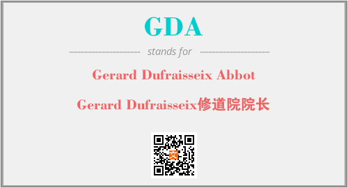 英文缩略词“GDA”经常作为“Gerard Dufraisseix Abbot”的英文缩写来使用,中文表示:“Gerard Dufraisseix修道院院长”。本文将详细介绍英文缩写词GDA所代表英文单词,其对应的中文拼音、详细解释以及在英语中的流行度。此外,还有关于缩略词GDA的分类、应用领域及相关应用示例等。