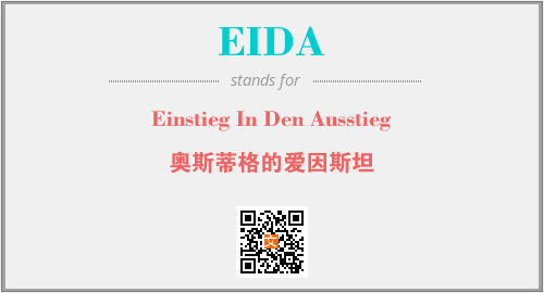 上述内容是“Einstieg In Den Ausstieg”作为“EIDA”的缩写,解释为“奥斯蒂格的爱因斯坦”时的信息,以及英文缩略词EIDA所代表的英文单词,其对应的中文拼音、详细解释以及在英文中的流行度和相关分类、应用领域及应用示例等。