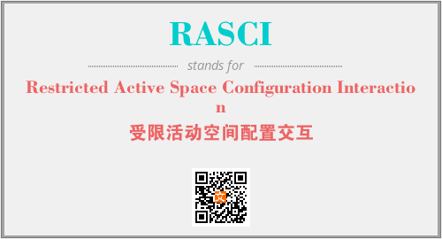 英文缩略词“RASCI”经常作为“Restricted Active Space Configuration Interaction”的英文缩写来使用,中文表示:“受限活动空间配置交互”。本文将详细介绍英文缩写词RASCI所代表英文单词,其对应的中文拼音、详细解释以及在英语中的流行度。此外,还有关于缩略词RASCI的分类、应用领域及相关应用示例等。
