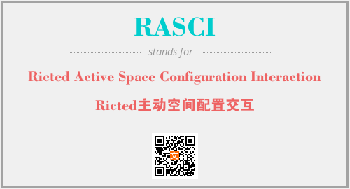 英文缩略词“RASCI”经常作为“Ricted Active Space Configuration Interaction”的英文缩写来使用,中文表示:“Ricted主动空间配置交互”。本文将详细介绍英文缩写词RASCI所代表英文单词,其对应的中文拼音、详细解释以及在英语中的流行度。此外,还有关于缩略词RASCI的分类、应用领域及相关应用示例等。