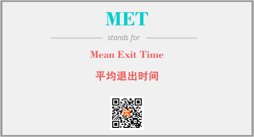 上述内容是“Mean Exit Time”作为“MET”的缩写,解释为“平均退出时间”时的信息,以及英文缩略词MET所代表的英文单词,其对应的中文拼音、详细解释以及在英文中的流行度和相关分类、应用领域及应用示例等。