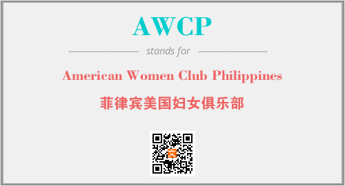 英文缩略词“AWCP”经常作为“American Women Club Philippines”的英文缩写来使用,中文表示:“菲律宾美国妇女俱乐部”。本文将详细介绍英文缩写词AWCP所代表英文单词,其对应的中文拼音、详细解释以及在英语中的流行度。此外,还有关于缩略词AWCP的分类、应用领域及相关应用示例等。