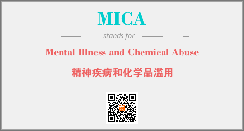 英文缩略词“MICA”经常作为“Mental Illness and Chemical Abuse”的英文缩写来使用,中文表示:“精神疾病和化学品滥用”。本文将详细介绍英文缩写词MICA所代表英文单词,其对应的中文拼音、详细解释以及在英语中的流行度。此外,还有关于缩略词MICA的分类、应用领域及相关应用示例等。